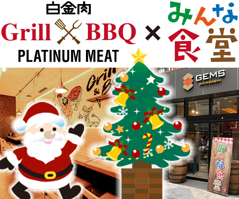 クリスマスイヴに「みんな食堂」を特別開催、【クリスマスケーキを無料配布】いたします。港区からメールで案内を受けた方が対象です。12月24日(金)に「グリル&バーベキュー×みんな食堂(港区新橋2-12-8GEMS新橋1F)」まで取りに来ていただきます。